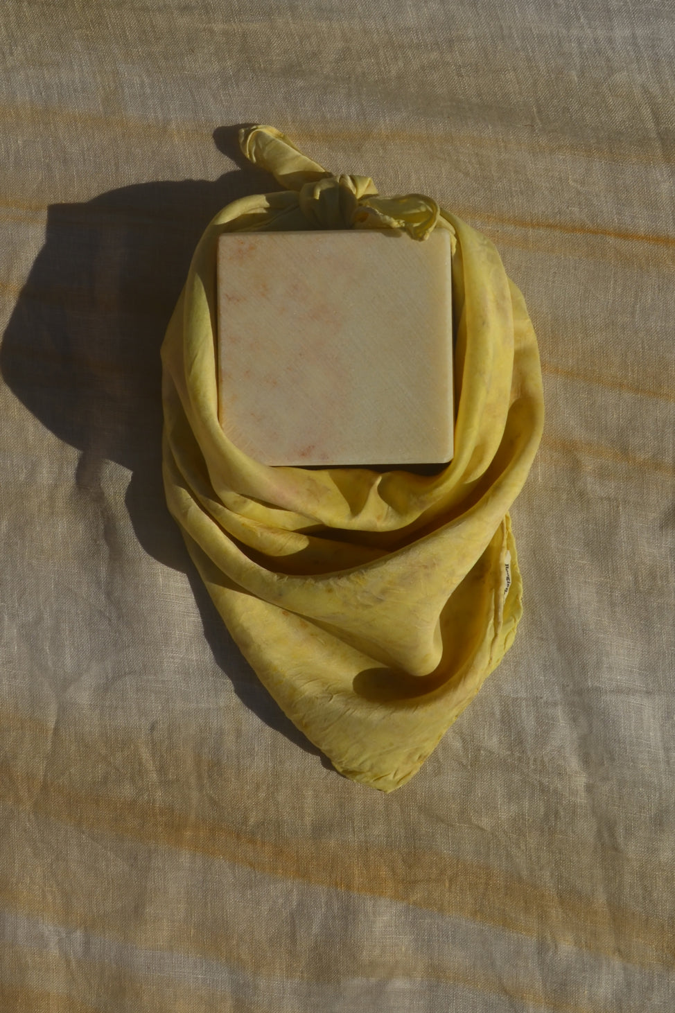 This 100% silk scarf is delicately dyed with plants using only sustainable processes with no chemical treatments to give cherish and makes your outfit even more classic and precious.