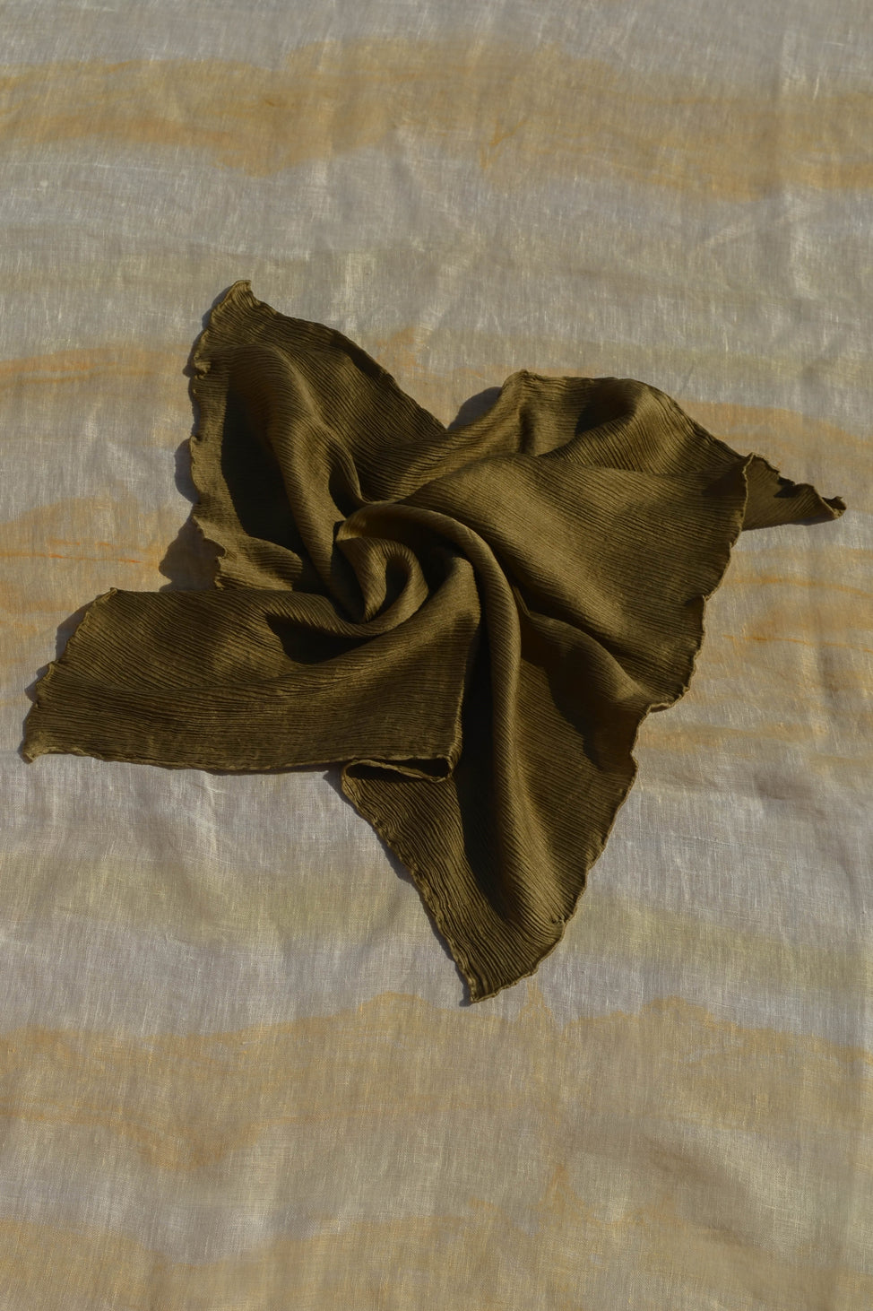 This 100% silk scarf is delicately dyed with plants using only sustainable processes with no chemical treatments to give cherish and makes your outfit even more classic and precious.
