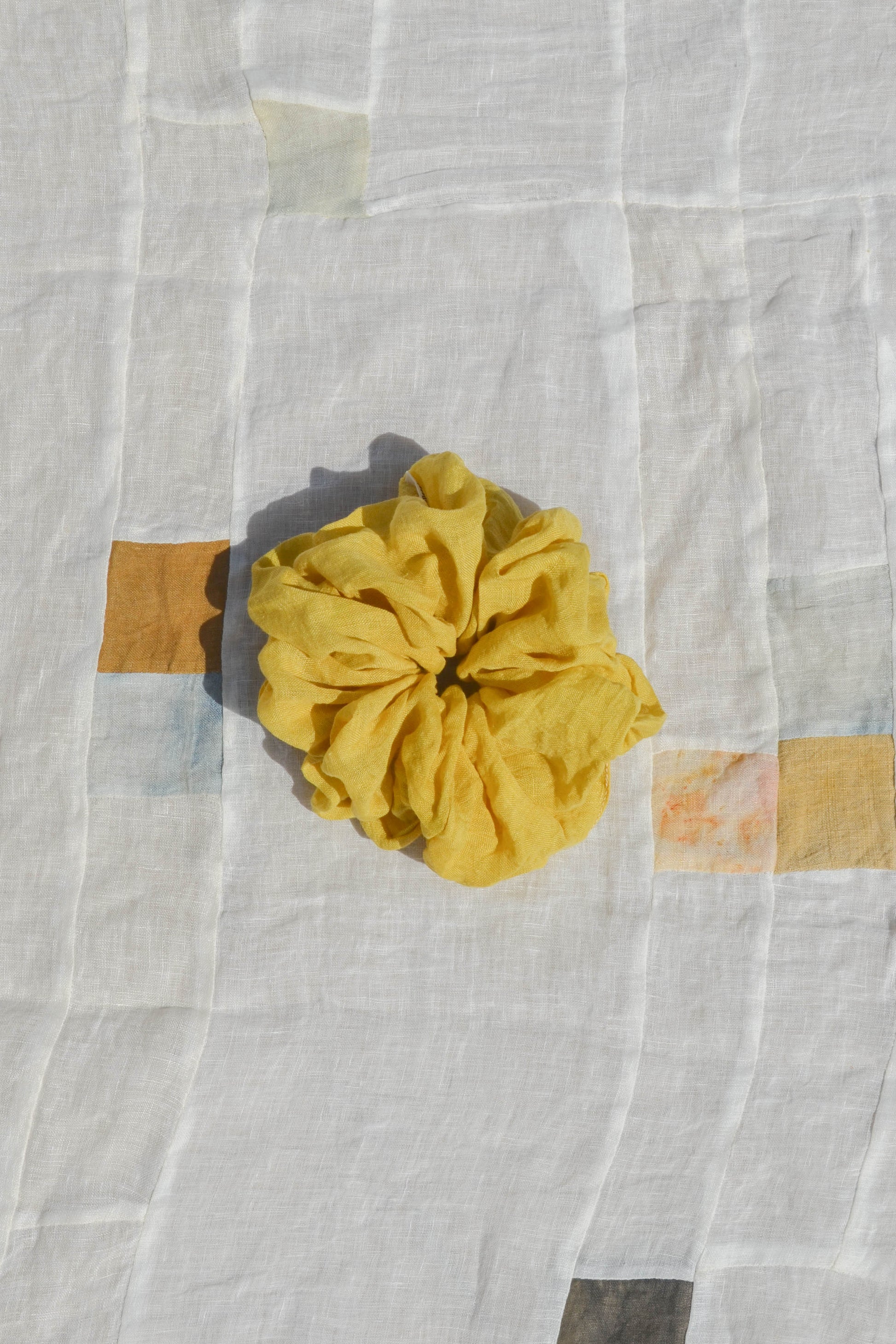 This 100% linen scrunchie is delicately dyed with natural sources using only sustainable processes with no chemical treatments in our studio which makes them alive and fade over by time with the response to sunlight and water. It is the special part of its charm, magic and harmony.